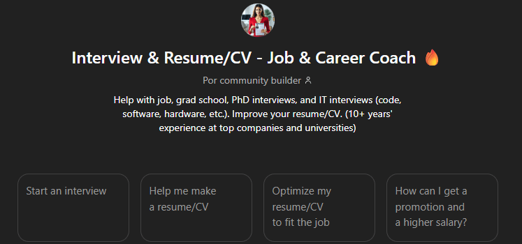 Presentamos el GPT: Interview & Resume/CV - Job & Career Coach 🔥