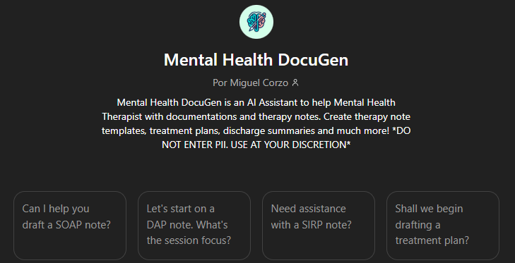 Presentamos el GPT: Mental Health DocuGen