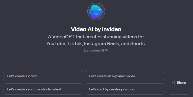 Presentamos el GPT: Video AI by invideo.