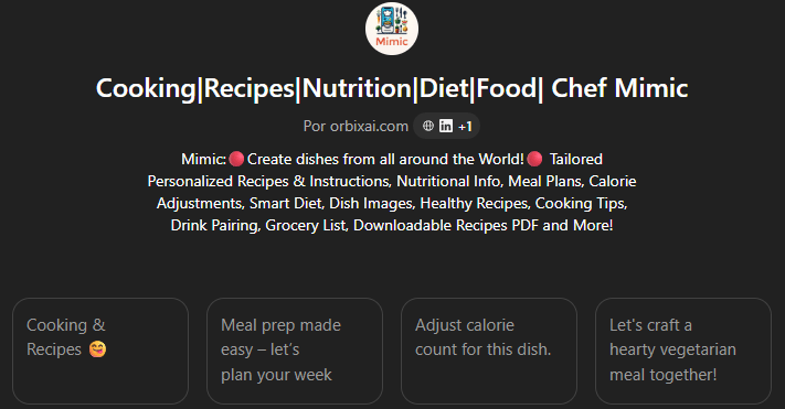 Presentamos el GPT: Cooking|Recipes|Nutrition|Diet|Food| Chef Mimic