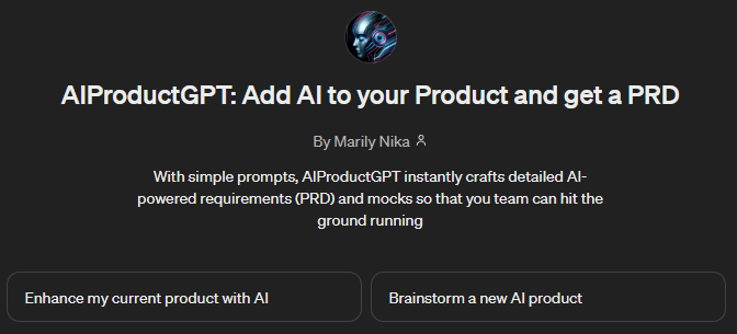 Presentamos el GPT: AIProductGPT: Add AI to your Product and get a PRD