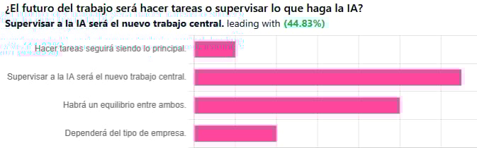 Respuestas a la encuesta pasada. ¿El futuro del trabajo será hacer tareas o supervisar lo que haga la IA? y prevalece: “Supervisar a la IA será el nuevo trabajo centra”.