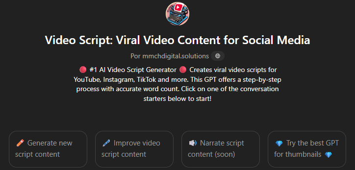 Presentamos el GPT: Video Script: Viral Video Content for Social Media