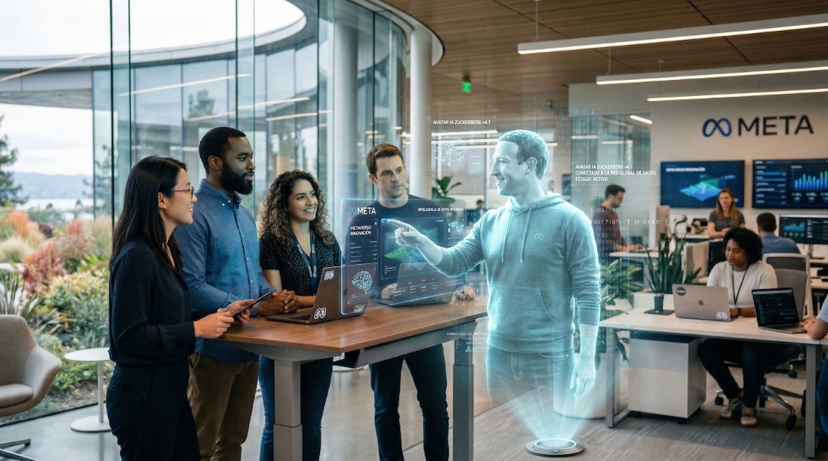 Meta está desarrollando una versión de IA de Mark Zuckerberg para interactuar con empleados en tiempo real y reforzar su giro estratégico hacia la IA. El proyecto busca crear un avatar 3D fotorrealista entrenado con su voz, tono, gestos, declaraciones públicas y pensamiento reciente sobre la empresa. Zuckerberg participa personalmente en las pruebas y entrenamiento.